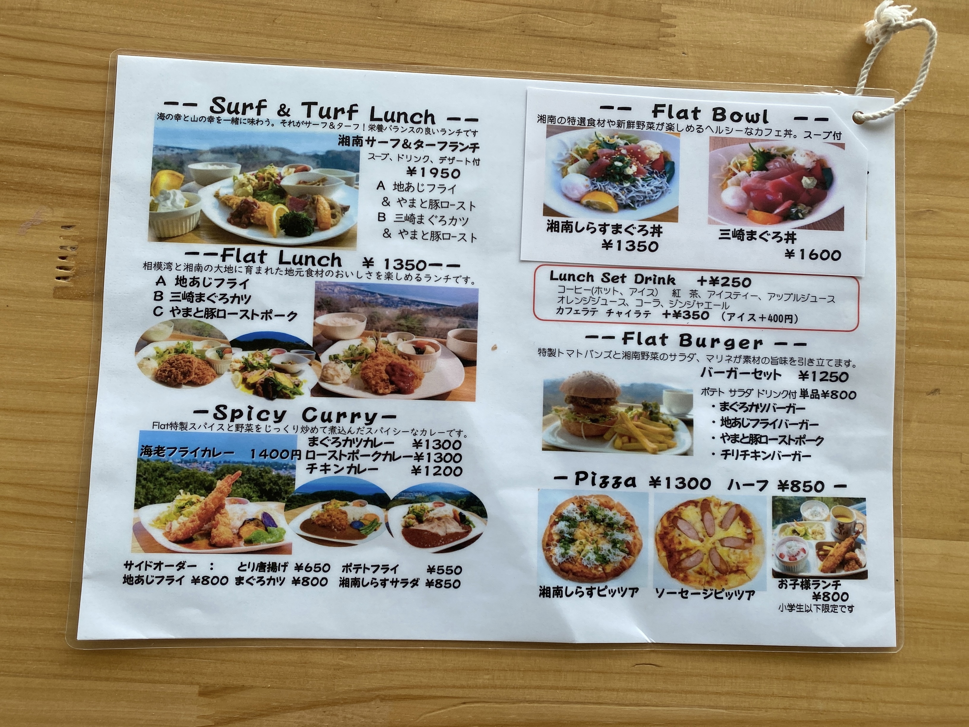2023/05/16 湘南平展望台でハンバーガーランチ! 箱根旅行の際に湘南平展望台に立ち寄りました。 湘南平展望台内のレストランでランチをしました。 Flatというお店。 メニュー。 でん! まぐろかつバーガー。 やまとぶたローストポークバーガー。 ✳︎ ✳︎ ✳︎ ✳︎ 『かなちゅうごはん』でInstagramやってます! ✳︎ ✳︎ ✳︎ ✳︎ ランキング参加中!ポチッとお願いします。 にほんブログ村