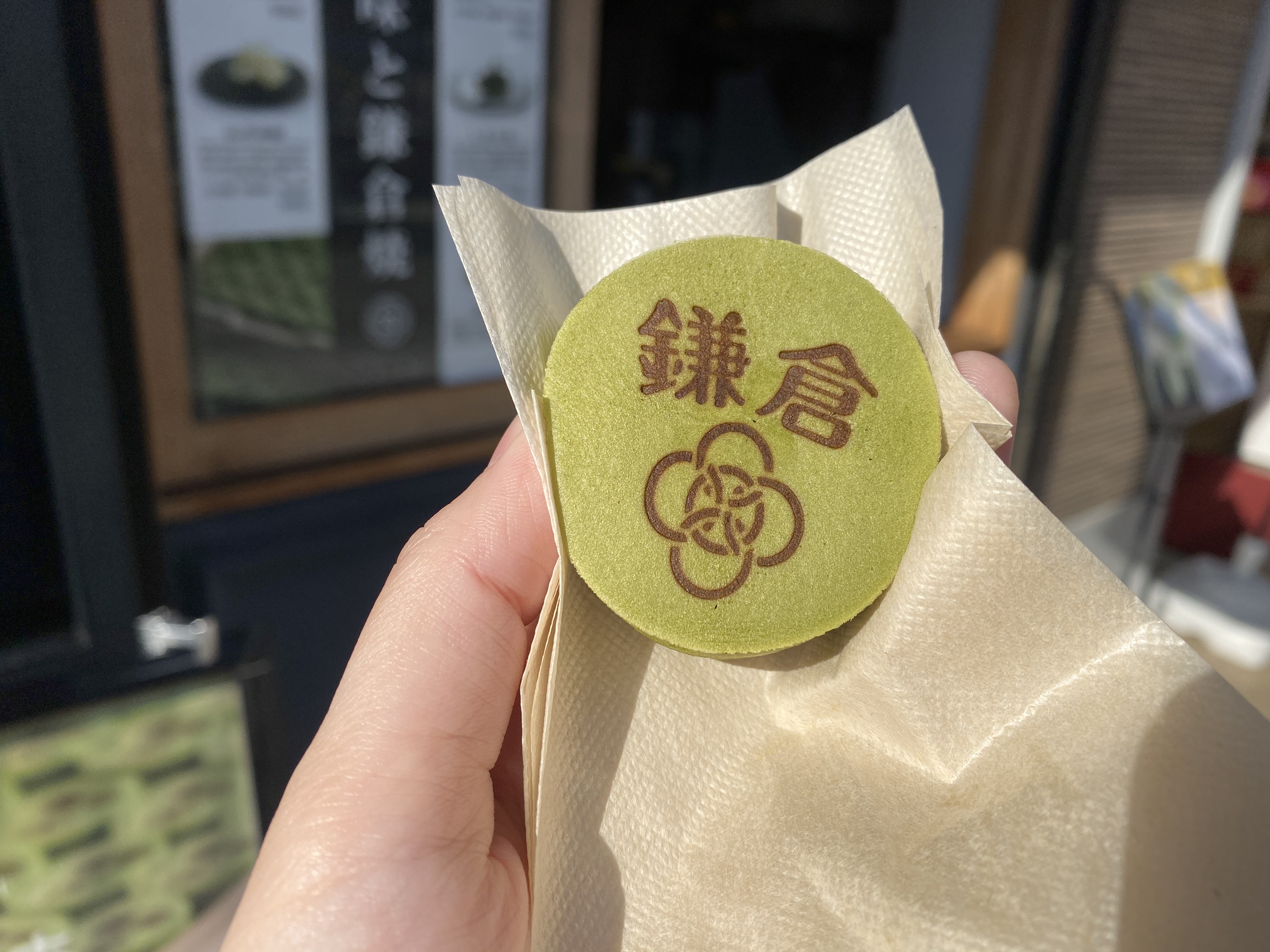 2020/01/02 若宮大路で鎌倉焼きをいただきました! 鶴岡八幡宮へつづく若宮大路。 若宮大路にある食べログ高評価のお店に来てみました。『アルブル ノワール ヤクミ』という薬味のお店らしいのですが、こちらの鎌倉焼きというものが話題を呼んでいるようです。 作っているのが見られます。 鎌倉焼き60円。ちびサイズですな。 抹茶生地の中に胡麻餡。 食べ歩きにちょうどよかったです! ランキング参加中!ポチッとお願いします↓ にほんブログ村